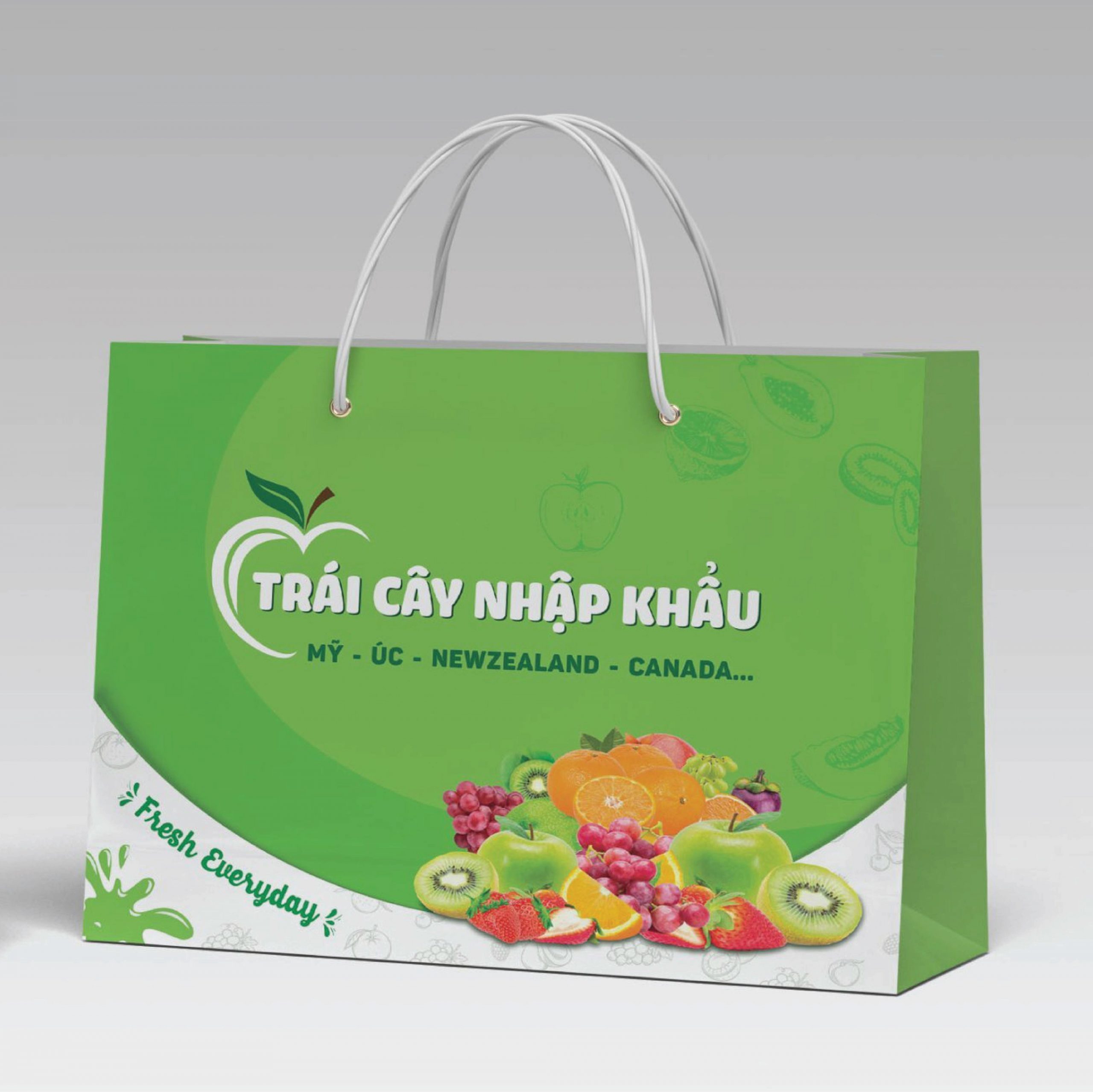 Túi giấy đựng hoa quả màu xanh bán sẵn với nhiều kích cỡ khác nhau.